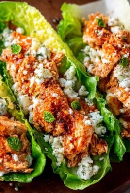 Für alle, die auf eine bewusste Ernährung achten, sind diese Buffalo Chicken Salat-Wraps ein absoluter Volltreffer. Mit beeindruckenden 35 Gramm Protein pro Portion sättigen sie langanhaltend und unterstützen den Muskelaufbau, ideal für Sportler oder einfach jeden, der sich fit halten möchte. Durch den Verzicht auf traditionelle Tortillas und die Nutzung frischer Salatblätter bleiben die Kohlenhydrate minimal, was sie zu einer hervorragenden Wahl für eine kohlenhydratarme Ernährung macht. Das ist smartes Essen, das schmeckt und gleichzeitig Ihren Körper optimal versorgt, ohne schwere oder unnötige Kalorien.