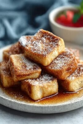 Wir alle kennen diese Sonntage, an denen man einfach etwas Besonderes möchte, aber die Lust, stundenlang in der Küche zu stehen, gegen null geht. Ich erinnere mich noch gut an den Morgen, als ich das erste Mal mit dieser Idee experimentierte. Die Kinder waren schon wach und hungrig, und ich wollte etwas, das nicht nur satt macht, sondern auch ein Lächeln auf ihre Gesichter zaubert. Der Kühlschrank gab nicht viel her, aber Brot, Eier und Zimt waren immer da. Und dann kam der Geistesblitz: Warum nicht das Beste aus beiden Welten vereinen? Zimtschnecken sind ein Traum, aber der Teig ist aufwendig. Französischer Toast ist schnell, aber manchmal fehlt ihm das gewisse Etwas. Und so wurden die Französische Toastscheiben mit Zimtschneckengeschmack geboren. Es war eine dieser spontanen Eingebungen, die sich als kulinarischer Volltreffer entpuppten. Der Moment, als der erste Bissen genommen wurde und ein begeistertes “Mmmh!” durch die Küche hallte, bleibt unvergesslich. Das Geheimnis liegt nicht nur in der Kombination der Aromen, sondern auch in der Einfachheit. Man braucht keine ausgefallenen Zutaten oder stundenlange Zubereitungszeit, um diesen Genuss zu zaubern. Es ist die perfekte Mischung aus Komfort und Raffinesse, die sowohl Kinder als auch Erwachsene begeistert. Jede Scheibe ist außen knusprig und innen zart, durchzogen von einer süßen, klebrigen Zimtfüllung, die einem das Gefühl gibt, ein Stückchen Himmel zu essen. Dieses Gericht ist mehr als nur ein Frühstück; es ist ein Fest für die Sinne, das die Seele wärmt und den Tag mit einem süßen Höhepunkt beginnen lässt. Es ist der Beweis, dass die besten Dinge im Leben oft die einfachsten sind und mit ein wenig Kreativität und Liebe entstehen. Es ist eine Einladung, den Alltag zu entschleunigen und sich einen Moment puren Genusses zu gönnen. Egal, ob Sie ein erfahrener Koch sind oder zum ersten Mal in der Küche stehen, dieses Rezept wird Ihnen gelingen und Ihnen Lob einbringen, versprochen!