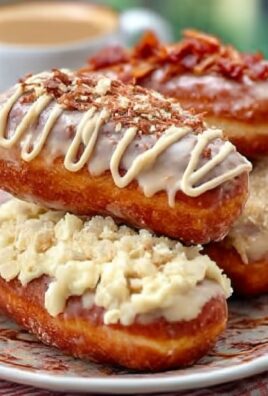 Der Geruch von frisch gebackenen, warmen Donuts, überzogen mit einer glänzenden Ahorn-Glasur, ist einfach magisch. Jeder Bissen dieser luftigen, goldbraunen Köstlichkeiten ist wie eine Umarmung für die Seele, ein süßer Moment, der den Alltag vergessen lässt und pure Freude verspricht. Stellen Sie sich vor, wie Sie in einen dieser herrlich fluffigen Selbstgemachte Ahorn-Donut-Riegel beißen, der Teig schmilzt auf der Zunge und die süße Ahorn-Glasur zerfließt sanft. Es ist nicht nur ein Gebäckstück, es ist ein Stückchen Glück, das nach Kindheit schmeckt und die Herzen im Sturm erobert. Hier sind einige herausragende Merkmale dieser himmlischen Leckerei: Die Zubereitung ist überraschend unkompliziert und macht aus jedem Küchenneuling einen Donut-Meister mit strahlendem Gesicht. Das Geschmacksprofil ist eine perfekte Balance aus süßem Ahorn und dem sanften, leicht würzigen Hefeteig, einfach unwiderstehlich. Diese Riegel sind ein wahrer Blickfang auf jedem Tisch, ihre goldene Farbe und die glänzende Glasur laden sofort zum Zugreifen ein. Ob zum Frühstück, Brunch oder als Dessert, diese Ahorn-Donut-Riegel sind unglaublich vielseitig und passen zu jeder Gelegenheit. Stellen Sie sich einen regnerischen Sonntagmorgen vor, das Haus duftet nach frischer Hefe und süßem Ahorn. Es ist ein Duft, der sofort Erinnerungen weckt, vielleicht an Großmutters Küche oder an den Besuch einer gemütlichen Bäckerei in Ihrer Lieblingsstadt. Genau dieses Gefühl möchte ich mit den Selbstgemachte Ahorn-Donut-Riegeln in Ihre Küche bringen. Diese Riegel sind nicht nur eine einfache Süßspeise, sie sind eine Ode an die Gemütlichkeit, an das Beisammensein und an die pure Freude am Selbermachen. Der erste Versuch, diese Donut-Riegel zu backen, war eine kleine Katastrophe. Der Teig wollte nicht gehen, die Glasur war zu flüssig und am Ende sah es eher aus wie eine Ahorn-Pfütze auf einem überbackenen Stück Brot. Aber wie das Leben so spielt, lernt man aus seinen Fehlern. Nach einigen Versuchen und viel Lachen (und einer ordentlichen Portion Zucker auf dem Küchenboden) habe ich das perfekte Rezept für fluffige, goldbraune Riegel mit der idealen Ahorn-Glasur gefunden. Und jetzt teile ich es mit Ihnen, damit Sie diesen Umweg nicht nehmen müssen. Diese Riegel sind ein sicherer Weg, um Familie und Freunde zu beeindrucken – oder einfach sich selbst zu verwöhnen.